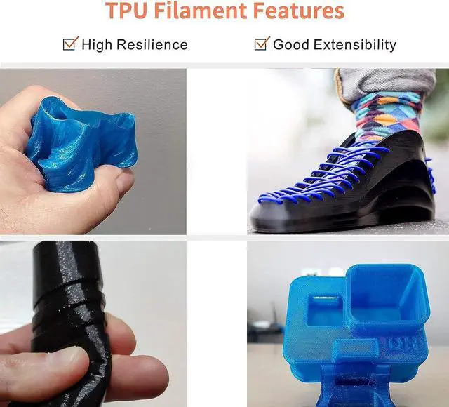 Tangle-Free TipsBlue Flexible TPU Filament dried 24 hours before packaging and vacuum sealed with desiccants in nylon bag. To Avoid being Tangled, Filament should be fix into Spool Holes after Every Time Use.