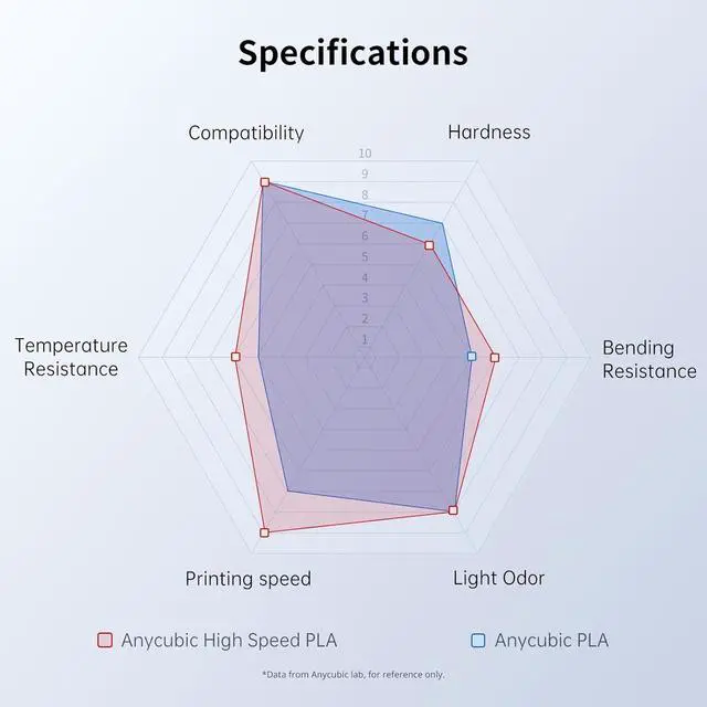 High Fluidity, Rapid Shaping Compared to standard PLA filaments, Anycubic High-Speed PLA Filaments boast enhanced fluidity and better cooling effect, ensuring smooth and consistent feeding for filaments after melting and rapid model cooling and shaping.
