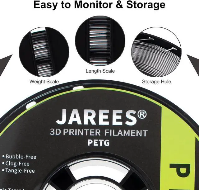 100% Tangle-Free & CompatibilityJarees 1.75 filament produced with laser diameter control and automatic winding system guarantees success even in the longest prints. Never mind it will stop when printing. Supported all mainstream 3D printers, ensuring that the filament is used in the shortest possible time.