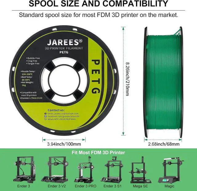 Good Layer Adhesion & RigidityNo warping, no jamming, Clog-free and Bubble-Free, JAREES PETG is a worry-free 3D Printer Filament provides excellent dimensional stability of models and adhesion to the substrate.