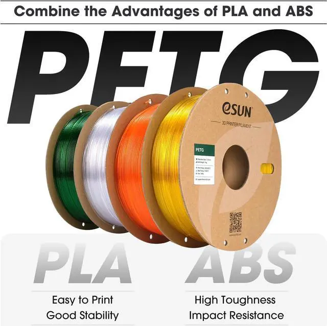 PETG FilamentExcellent Clarity, Light Transmission and High Gloss. Waterproof. High Toughness. Good Impact Resistance. Good Mechanical Strength. Weather Resistance. Chemical Resistance. Good Stability. Combines the advantages of PLA and ABS.