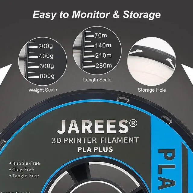 Good Layer Bonding Good layer bonding strength make parts stronger. JAREES PLA+ has better overhang properties that leave less stringing on the final print.