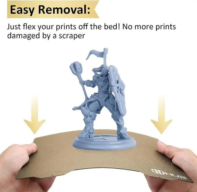 QUICK & EASY No more tape, no more glue, no more shovel. Easy to adhere to the printing surface, easy to remove the prints, flex slightly to pop your print right off.
