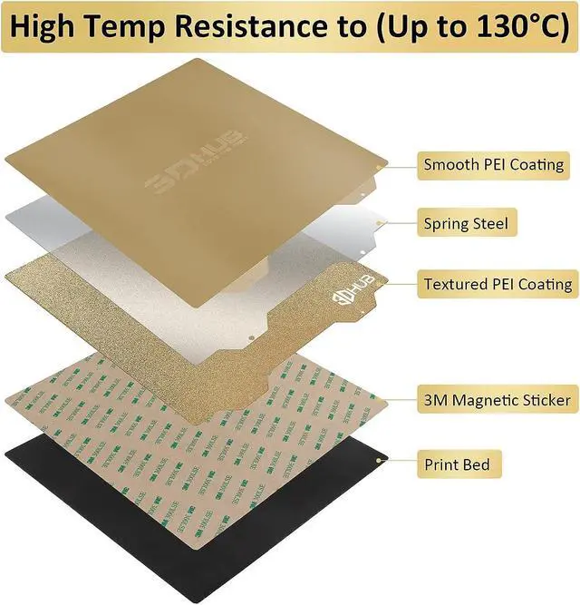DOUBLE SIDED Made using quality spring steel and Powder-Coated/Smooth PEI coating give it the most versatility of any build plate on the market. Includes 3M High-Temperature Magnetic Sheet (Up to 130°C)