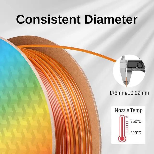 Rainbow Color: The rainbow color of this filament provides a vivid and colorful finish to your prints, making them stand out from the crowd. You can use it to create objects that are both functional and beautiful, such as vases, jewelry, etc.