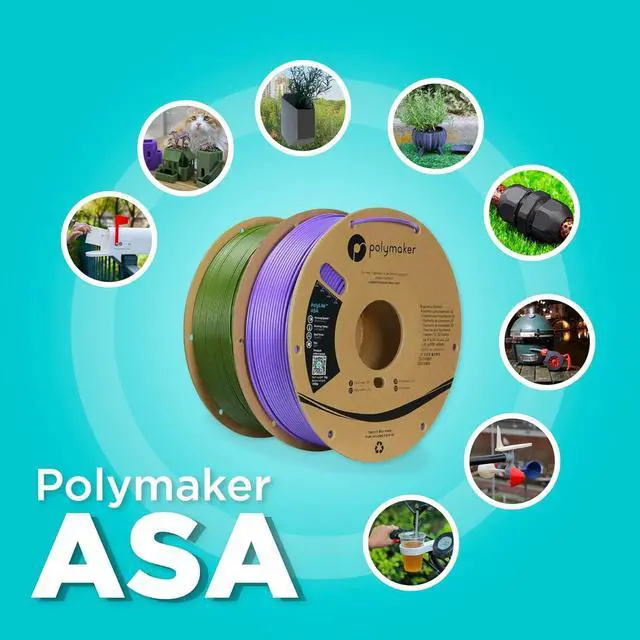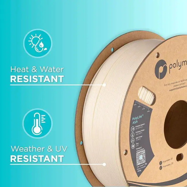 • Weather Resistant: Polymaker PolyLite ASA 3D printing filament combines the properties of ABS with added weather resistance. UV-resistant and less prone to environmental stress cracking, its ideal for outdoor applications like RC planes and car accessories.
