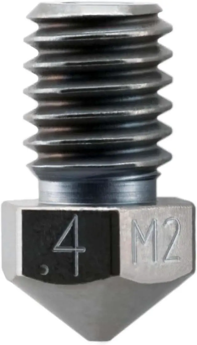 M2 Hardened High Speed Steel with Electroless Nickel plating and WS2 Coating Fits: All printers with V4 / V5 / V6 1.75 Hotend / Prusa i3 MK2 / MK2S / MK3 Orifice size: 0.4 mm Limited lifetime warranty against wear Made in USA by Micro Swiss