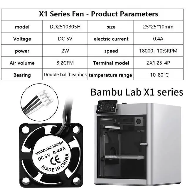 2510 fan for Bambu Lab X1/P1, Hotend cooling fan with Cable, quick cooling fan for Bambu X1C P1S P1P, 3D printer accessories