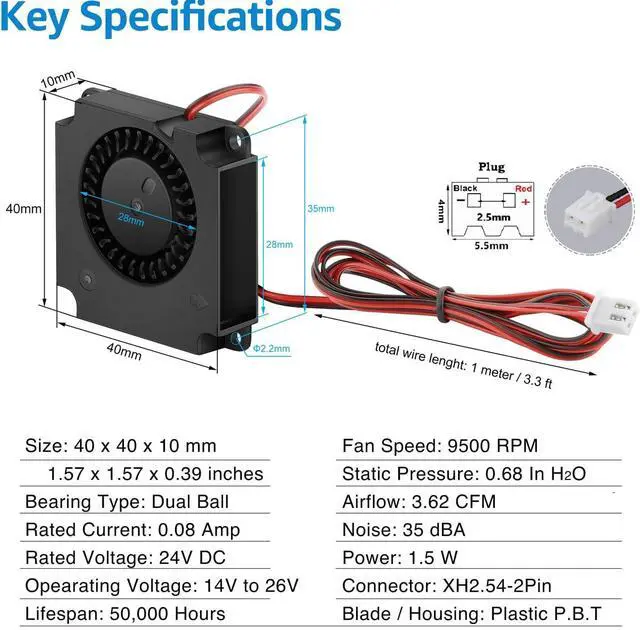 High-performance replacement for the 3D printer cooling fan, the GDSTIME 40mm x 10mm fan is ideal for you!