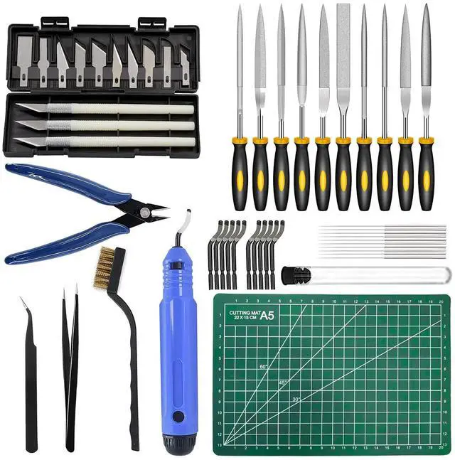 Package Includes:1×Brass Brush ,1×Wire Cutter, 1×Cutting Mat, 1×Deburring Tool Handle, 2×Tweezers, 10×Deburring Blades, 1×Craft Knife Set(10 blades with 3 handle),10×Needle Files Set, 1×Storage Bag. If you have any questions or concerns, please do not hesitate to contact us.