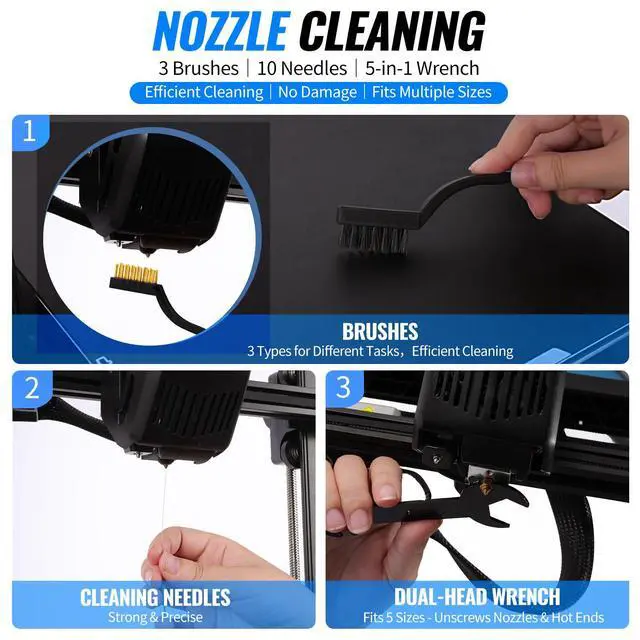 This kit includes wire cutters, needle-nose pliers, trimming tools for PLA/ABS, a high-quality hand drill with multiple bits, and five types of metal files. Perfect for cleaning, polishing, drilling, and deburring, each tool is selected to help you refine your prints with precision and ease.