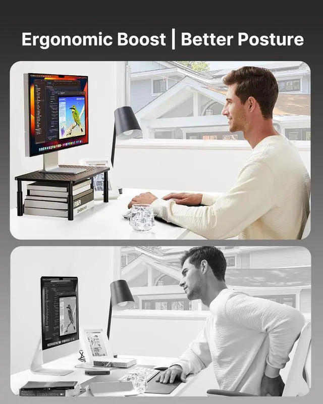 • EFFECTIVE HEAT DISSIPATION: The monitor riser is made of powder-coated steel with a ventilated platform designed to improve heat dissipation. The ventilation helps to keep your laptop cooler and avoid overheating.