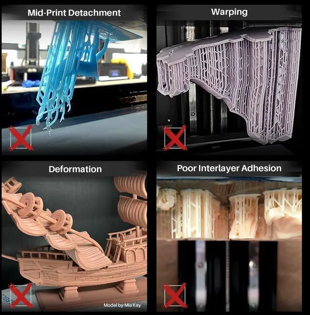 The Mini Heater features precise and intelligent temperature control, ensuring optimal stability from start to finish. Say goodbye to frustrating issues like mid-print detachment, warping, and poor interlayer adhesion that hinder your progress.