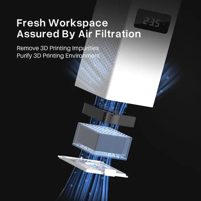 Embrace the combination of cleanliness and precision with the Mini Heater, which incorporates an efficient air filtration system, allowing to remove impurities and ensure a clean and purified printer chamber.
