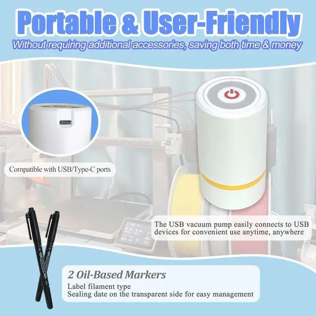 - Includes 2 oil-based markers to label filament type and sealing date on the transparent side for easy management