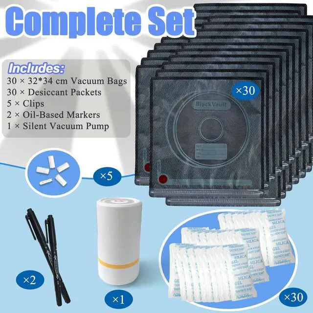PurifyLogix Upgraded 3D Printer Filament Vacuum Sealing Bag Kit, Lightproof and Moistureproof, Includes 30 Vacuum Storage Bags, 1 Vacuum Pump, 30 Desiccants, 5 Clips & 2 Marking Pens, 13.4 x 12.6 in