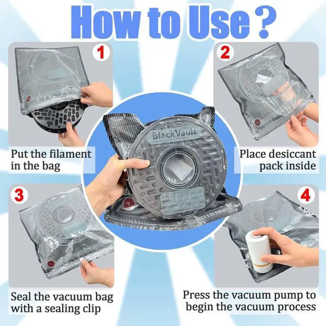 - Each vacuum storage bag accommodates mainstream filament specifications