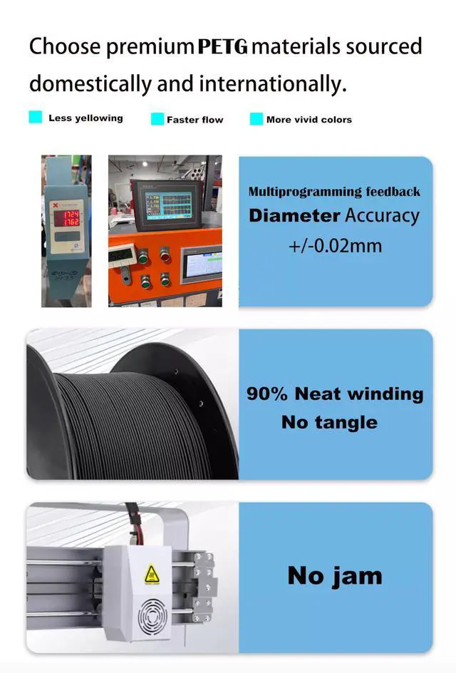 With 10 years of production and research and development, Stronghero3D is constantly looking for high-quality PETG raw materials and optimizing production processes. Our PETG filaments have less strings and less moisture absorption during printing.