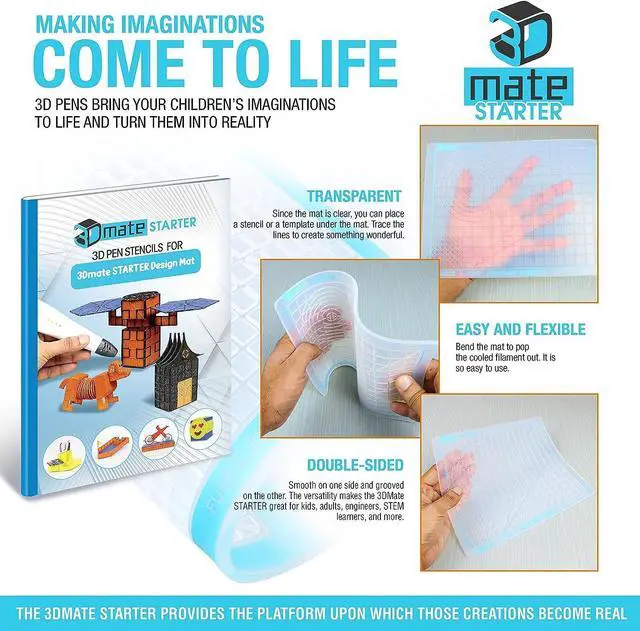 Bring your creative ideas to life with the 3Dmate Starter Transparent 3D Pen Mat, the ultimate accessory for 3D pen enthusiasts of all ages! Measuring 9 x 7 inches, this flexible, two-sided, heat-resistant silicone mat provides a safe and durable surface for crafting intricate designs with ease. The mats transparent design allows you to effortlessly trace patterns and templates, making it ideal for both beginners and experts. Paired with a compatible stencils book, youll have a variety of fun and creative templates to start your 3D pen journey, from simple designs for kids to detailed creations for adults.