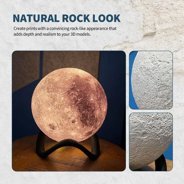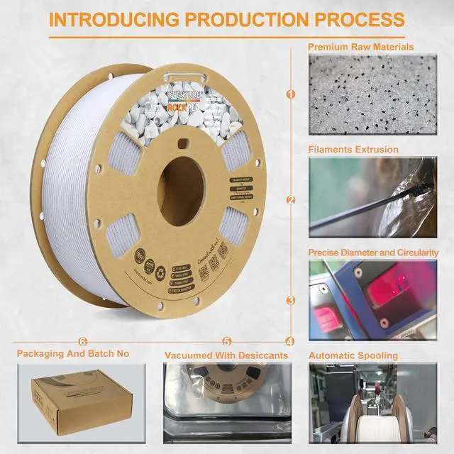 OVERTURE ROCK PLA filaments are developed based on natural PLA materials (Polylactic Acid) with a specitial treatment in our production line to get a rough surface and make them feel like rocks also.