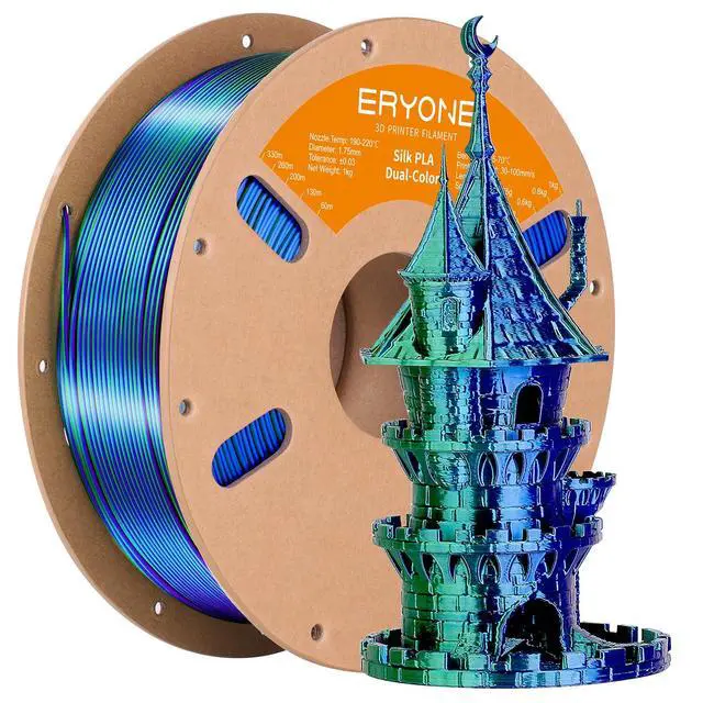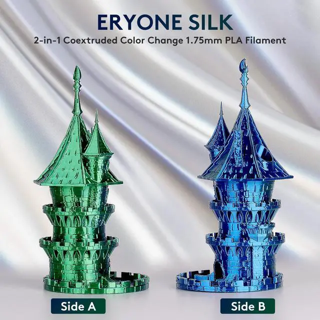 ERYONE Silk Coextruded PLA 1/2 of each combination of magicPLA coextruded filaments,You can change the visible color by rotating the color-blending filament to different orientations. Multicolor silk filaments can output with incredible pearlescent and gorgeous silk surface.