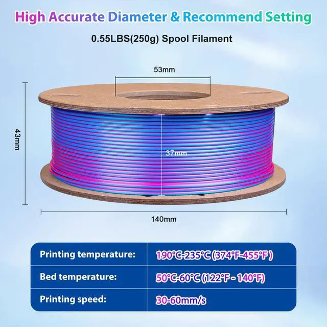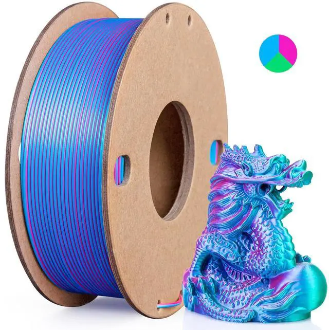 Different colors at different angles, you can see rose red, sky blue, green. Three colors are integrated in silk PLA filament, and multi-color printing can realize three colors in one model. Therefore, you will easily get all colors, even for very small prints. Printing will be full of surprises as different models will present different effects. Just enjoy your printing from now on!