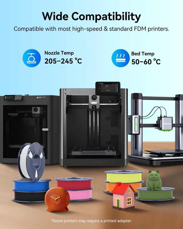 TROUBLE-FREE WINDING: Precisely wound to prevent tangles and breakage, with included filament clips for safe, organised storage, Recommended nozzle temperature 205°C - 245°C