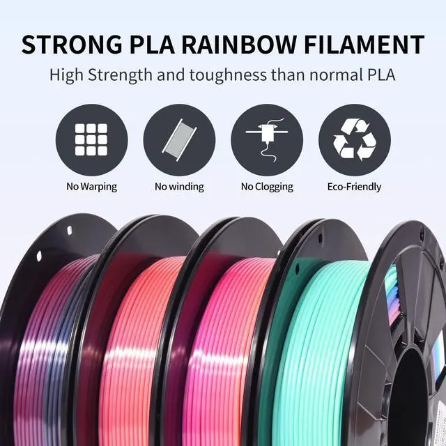 ![]() Silk Shiny Rainbow PLA | ![]() Silk Dual Color PLA | ![]() Tri-Colors PLA | ![]() Glow in The Dark PLA | ![]() Matte Rainbow PLA | ![]() Matte PLA Filament | ![]() Silk Rainbow PLA |
