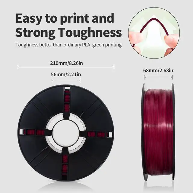 | High Toughness,Glossy finish | Matte Surface Finish | Multicolor Gradient | Toughness,Metallic Finish | No need to change the spool | PLA < Toughness,Glossy finish | Good for Lithophane |