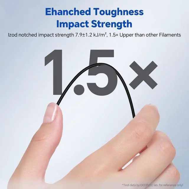 • Exceptional Mechanical PropertiesDEEPLEE PLA PRO features a bending modulus of 2750 ± 160 MPa for excellent rigidity and shape retention. With an impact strength of 7.9 ± 1.2 kJ/m², it offers superior impact resistance