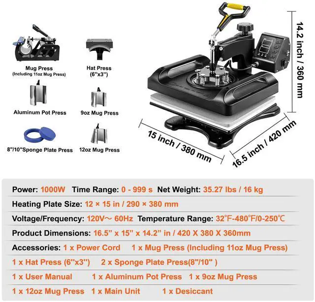 1 x Fully-Assembled Heat Press Machine for T-shirts