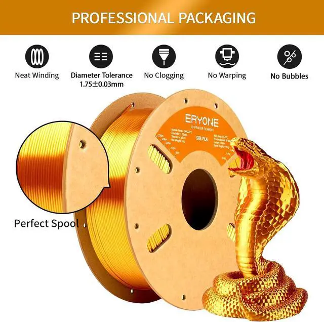 Vacuum-Sealed PackagingShipped with desiccant in moisture-proof packaging for filament that prints perfectly right out of the box.
