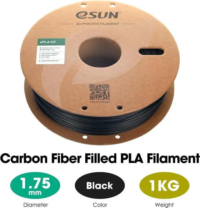 Low Shrinkage & Low Water AbsorptionCompared to PA CF, eSUN PLA CF has lower shrinkage and lower water absorption. Also, because it is based on PLA, it has the characteristic of PLA and doesn' t need to print in enclosed chamber. No bubbles, less stringing, high successful printing rate. Stable dimensional tolerence. Good winding, does not overlap or tangle.