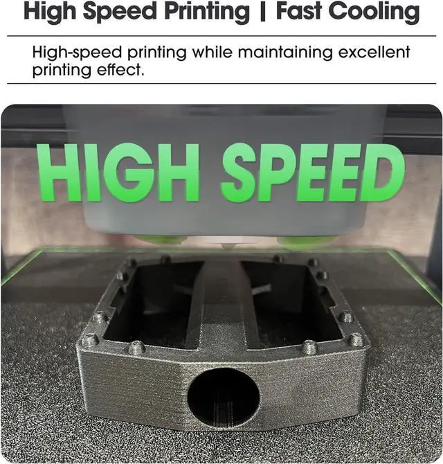 High Speed Printing & Fast CoolingeSUN PLA CF can maintain the printing quality and retain the integrity of the complete fine structures without layer lines and deformation while printing in high speed. Fast cooling. Printing Speed 50-300mm/s. Compatible with Bambu Lab X1/ X1C and P1P/ AnkerMake M5/ Voron 2.4 / Flsun V400/ Creality K1/ K1 Max and Ender 7/ Raise 3D Pro 3.
