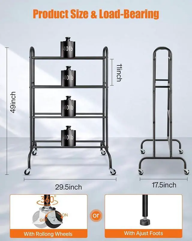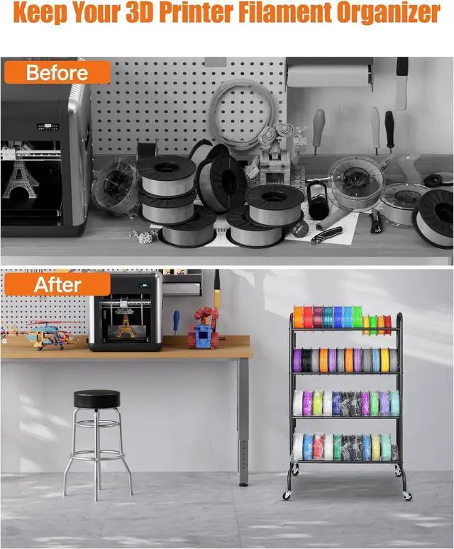 Stable & Secure Storage: Rest assured knowing that your 3D filament spools are securely held in place, without the risk of slippingor toppling. Each laye load-bearing up to 60lb with adjust foot or load-bearing up to 50lb with wheels.