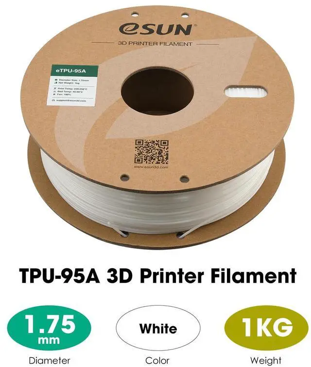 Shape-Memory Flexibility & Strong Layer BondingeSUN TPU 95A can quickly rebounds to original shape after stress. No permanent deformation after repeated stress. Strong interlayer cohesion even in high-speed printing, producing flexible parts with smooth surface finish.