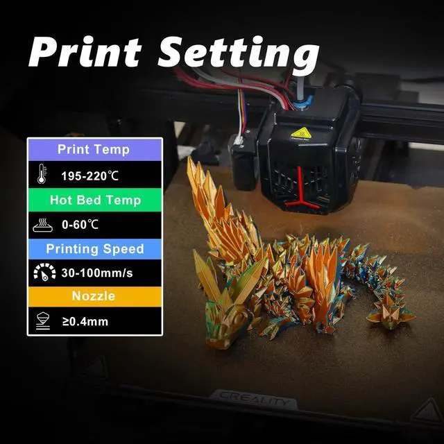 Easy to print: For better printing smoothness and success, please use 0.4 mm nozzle or bigger, printing speed lower than 150mm/s.