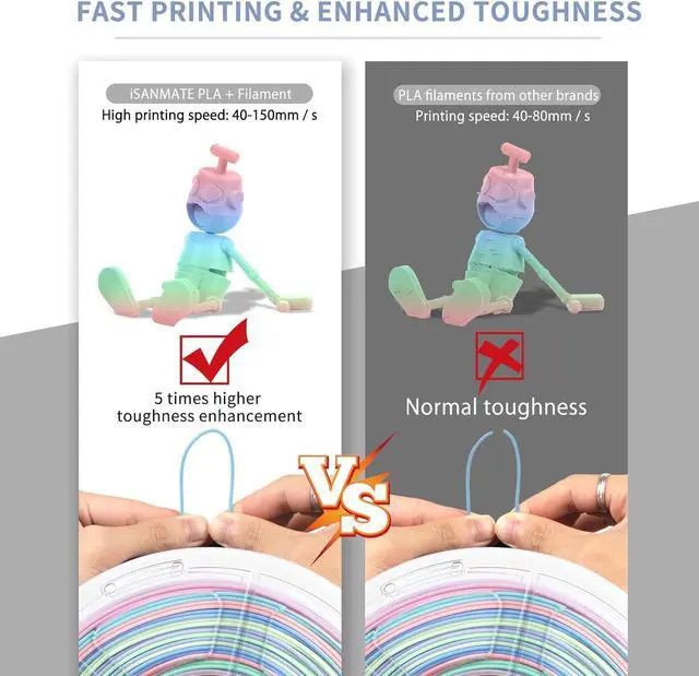 • [Gradient Filament Parameter]-iSANMATE PLA Plus Filament Print Temperature: 190 - 220, Recommended Temp:200. Printing Speed: 40-130mm/s, iSANMATE PLA+ filament dimensional: 1.75mm,accuracy +/- 0.03mm;