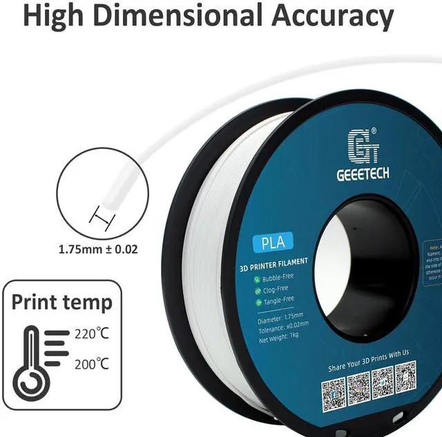 • Easy to UseMade of PLA, a commonly used go-to material known for its ease-of-use, if you like 3D Printing and want to unlock your creativity, Geeetech PLA filament is an ideal filament material choice for you, which can really help you to expand your capabilities of creating cool prints