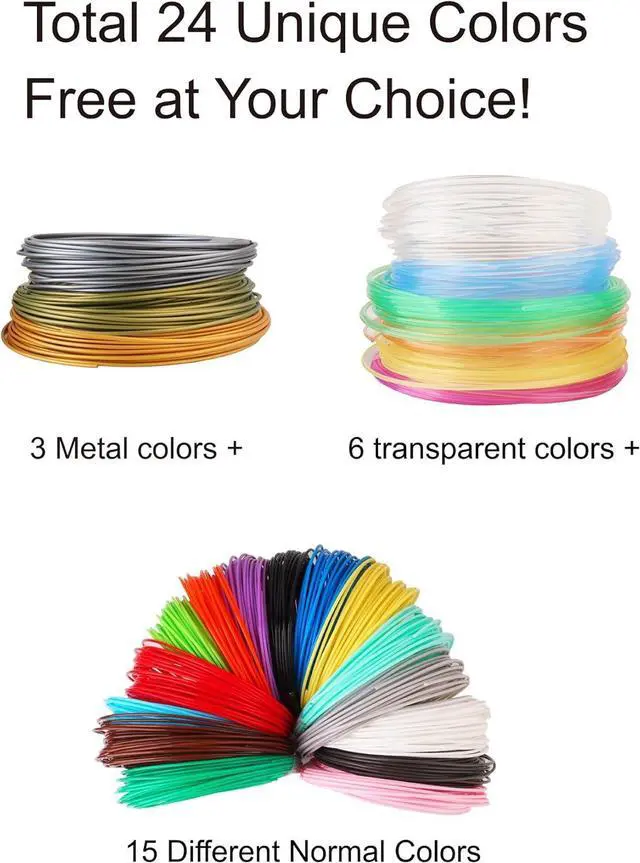 Colors: It comes with 3 Metal Colors, 6 Transparent Colors and 15 Normal Various Colors; It' s Great Gift for 3D Printing