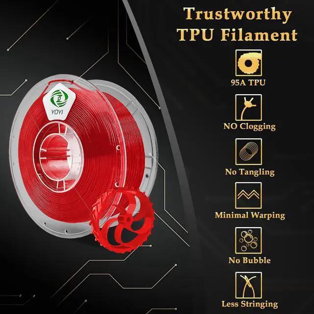 Tolerances: +/- 0.03 mm. Stable 1.75 mm TPU filament is good toughness not easy to break, high purity raw material leading smooth extrusion continuously fluent flow and no clogging. Strong adhesion and low shrinkage of 3D Printer Filament allows smooth first printing layer.