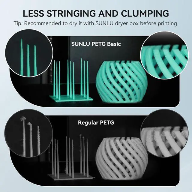 Why Choose SUNLU Official PETG: Our filament boasts a dimensional accuracy of 1.75 +/- 0.02 mm. This exceptional precision ensures compatibility with nearly all 1.75 mm 3D printers and can be adapted to Bambulab' s AMS & AMS Lite, making SUNLU the trusted choice for reliable, high-quality prints.