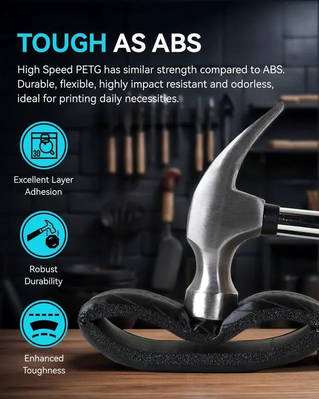 Combining PLA and ABS- PETG 3D printer filament combines the advantages of both PLA 3D printer filament and ABS 3D printer filament, ease to use like PLA, durable strength like ABS.