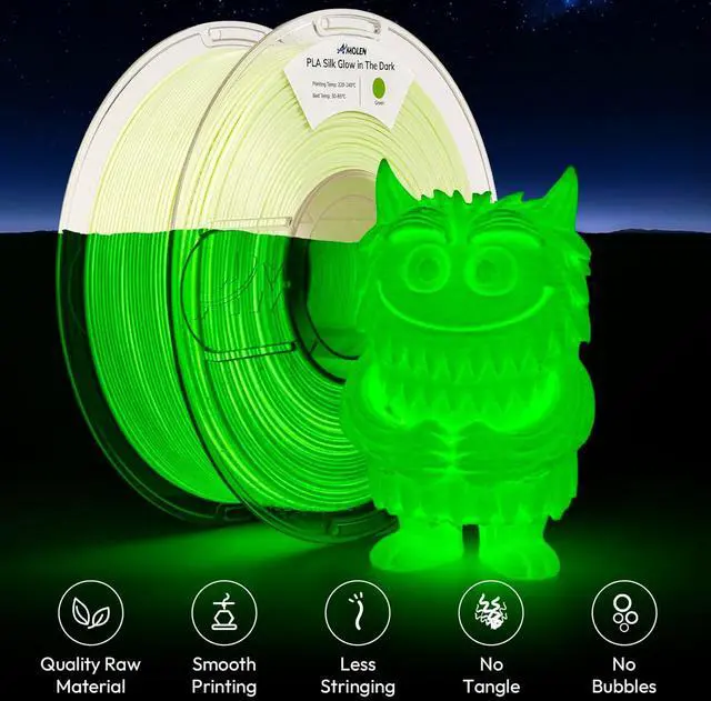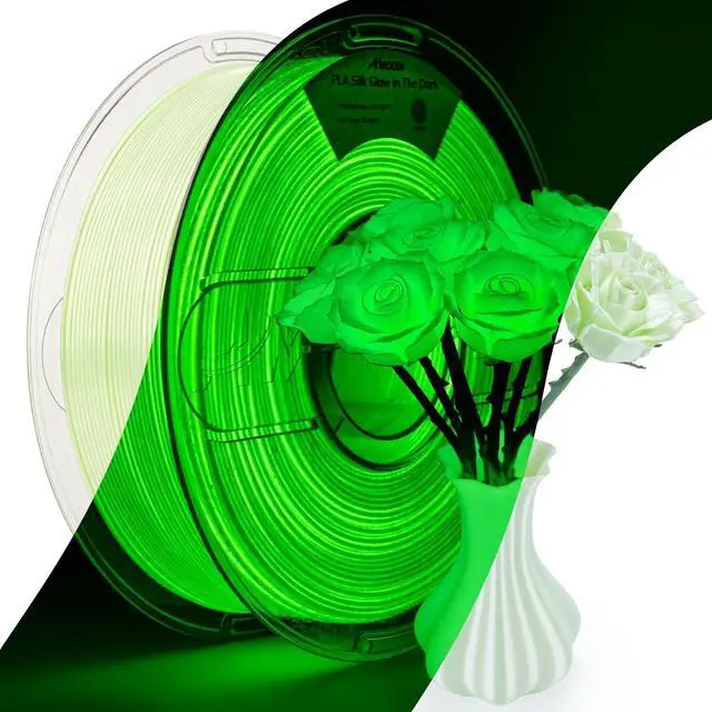 Silk & Glow 2 in 1: Amolen silk & glow in the dark pla filament green adds a unique and mesmerizing glow to your 3D prints and Shiny Silk in the daily use. It is ideal for creating eye-catching designs that stand out in the dark and daytime, perfect for night-time displays and decorations. New material luminous daytime is no longer monotonous white, but the original color of the luminous consumables