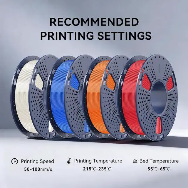 Recommended SettingsTo bring out the best in SUNLU filament, we recommend a nozzle temperature of 215-235°C, a bed temperature of 55-65°C, and a print speed of 50-100mm/s to achieve high-quality prints