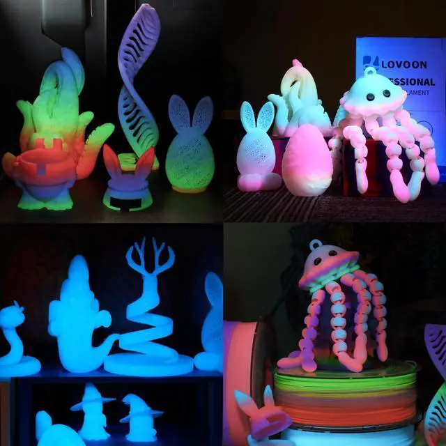 Turn darkness into canvas: Unleash the power of light with LOVOON' s Glow PLA filaments - your ultimate tool for creating self-luminous 3D printing, perfect