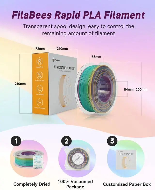 Retains Key PLA Advantages: No bubbles, less stringing, low odor, no warping, low shrinkage, no deformation, no cracking, FilaBees 3D Printing filaments fit most fdm 3D printers on the market