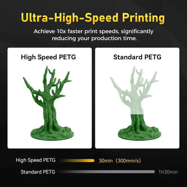 • Ultra High-Speed Printing - FLASHFORGE high-speed PETG filament features rapid melting and smooth flow, enabling speeds up to 600mm/s, ensuring high-quality prints and faster production.