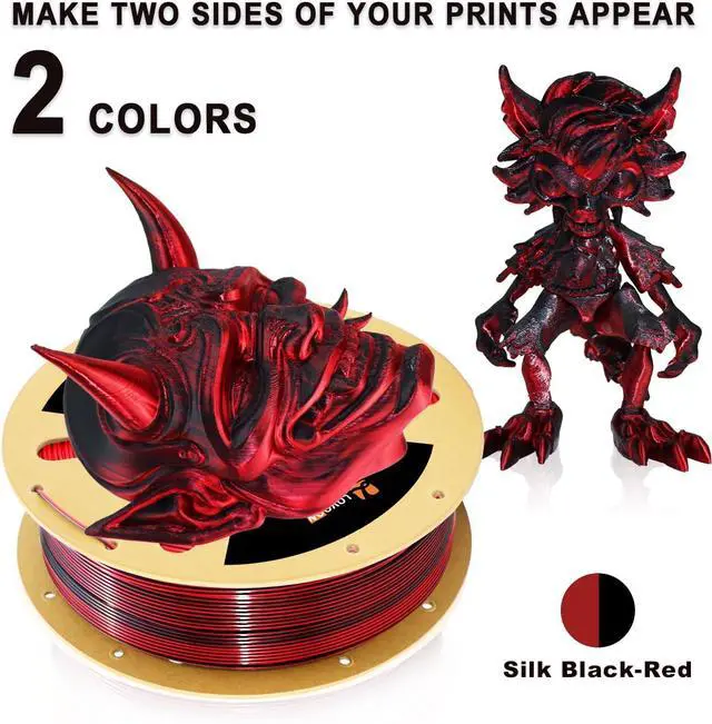 • 2 ROLLS FILAMENT BUNDLE: More savings than choosing separately. This multicolor filament bundle contains 2 spools of Silk Black/Red 1.75mm filaments. Unlock a world of creative possibilities with our silk dualcolor filament.