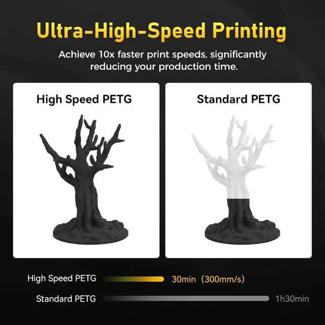 • Ultra High-Speed Printing - FLASHFORGE high-speed PETG filament features rapid melting and smooth flow, enabling speeds up to 600mm/s, ensuring high-quality prints and faster production.